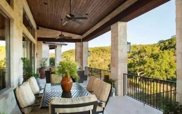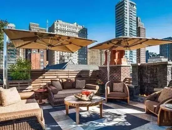 開放式露臺如果要擺放家具,建議放石器、金屬、防腐木等家具,不怕風吹日曬可以長期放在室外。