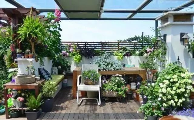 只要用心就能裝出一個這么漂亮的露臺,類似種些花花草草之類的讓人看上一眼,渾身都覺得舒服,很是享受,露臺可以做成開放式的、半開放式的和封閉式的,可根據個人喜歡和需要,將露臺合理利用。