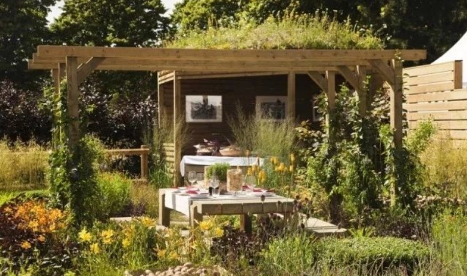 圍繞涼亭或廊架布置花境,給戶外休閑帶來一種浪漫的享受。鮮花盛開的時節,繁花錦簇的情境讓人賞心悅目,甜美的花香更讓人心曠神怡。