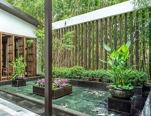 這種細微而注重細節,達到藝術化近極致的程度,這種對自然的提煉,使中式庭院景觀產生了深遠的禪意流水潺潺,心韻悠悠,青竹修修,落花滿庭,暗香盈袖,掬一捧井水,拈一縷秋香,婉約明媚的律動在旖旎中凝結成潔白的禪云升騰,任一院水聲輕輕流瀉,靜靜蔓延……