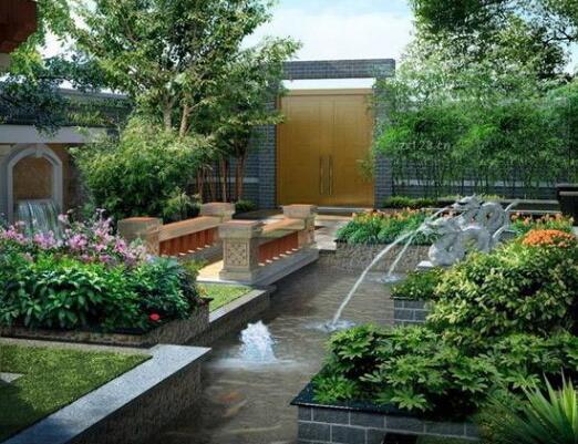 中式庭院景觀以水景為中心,水景及假山仿佛能濃縮自然千山萬水之景象,幾塊山石前簇后擁,白砂一片,綠苔在青石上,白墻上婆娑著竹影,文雅娉婷的竹子,是中式庭院的主體植物,植在小徑邊,植在粉墻邊,與竹燈與石燈相映增加自然朦朧的禪意,草種在石縫中和山石邊的,營造大自然郁郁蔥蔥的綠意,樹是刻意挑選幾棵珍稀吉祥之木,置于園中。