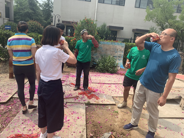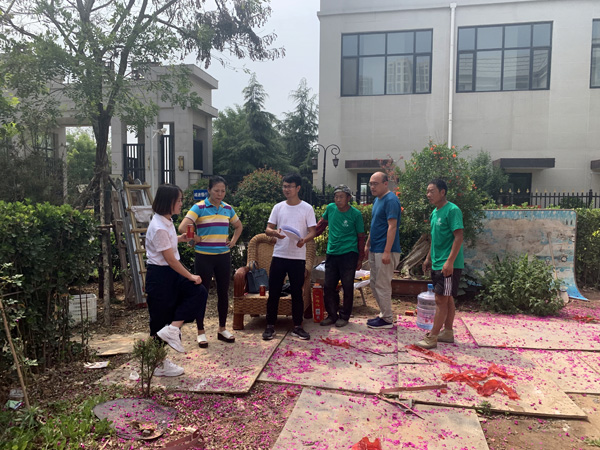 早上9:58,蘭亭景觀總經理孫總親自到達現場,與設計師、項目經理、工程工隊長進行了施工交底與施工放線......