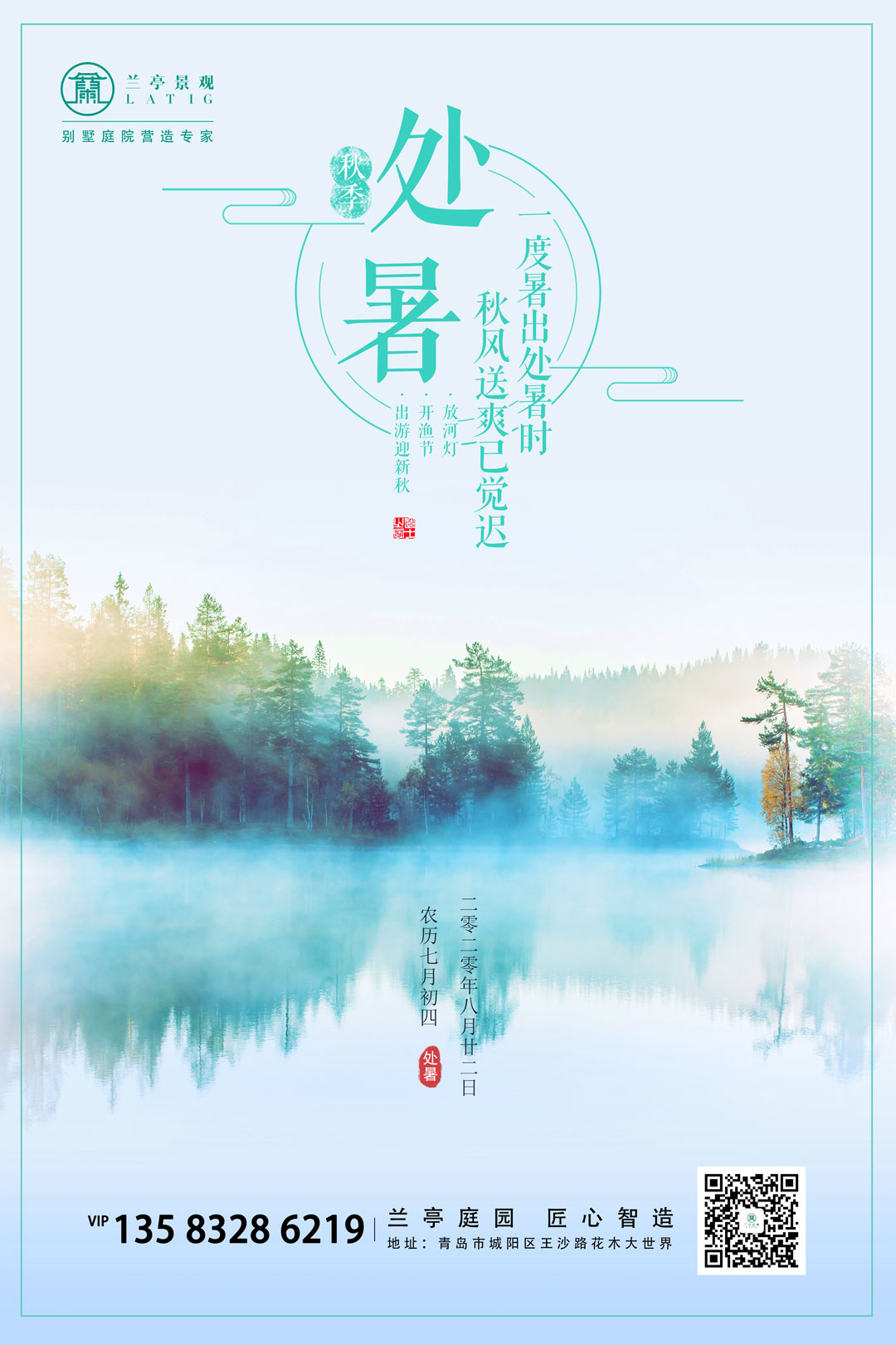 處暑 | 一度暑出處暑時,秋風送爽已覺遲 來源:青島庭院設計施工 點擊次數:5077 發布時間:2020/8/22 11:05:11 蘭亭景觀 | 別墅庭院設計|屋頂花園設計|私家花園設計 服務熱線:13605321758、13583286219 官方網站:www.gwdb.com.cn