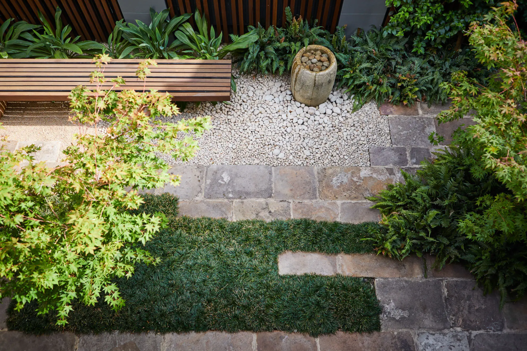 為了避免空洞,可以采用組合型鋪裝來搭配,例如石板+木平臺/小面積草坪,硬化面積建議不宜超過場地的70%,否則會帶來生硬冰冷的視覺。余下的空間作為綠化面積搭配,平衡視覺,同時種植一些低維護(hù)的綠植是最適合的。青島別墅庭院設(shè)計公司——蘭亭景觀為您介紹。