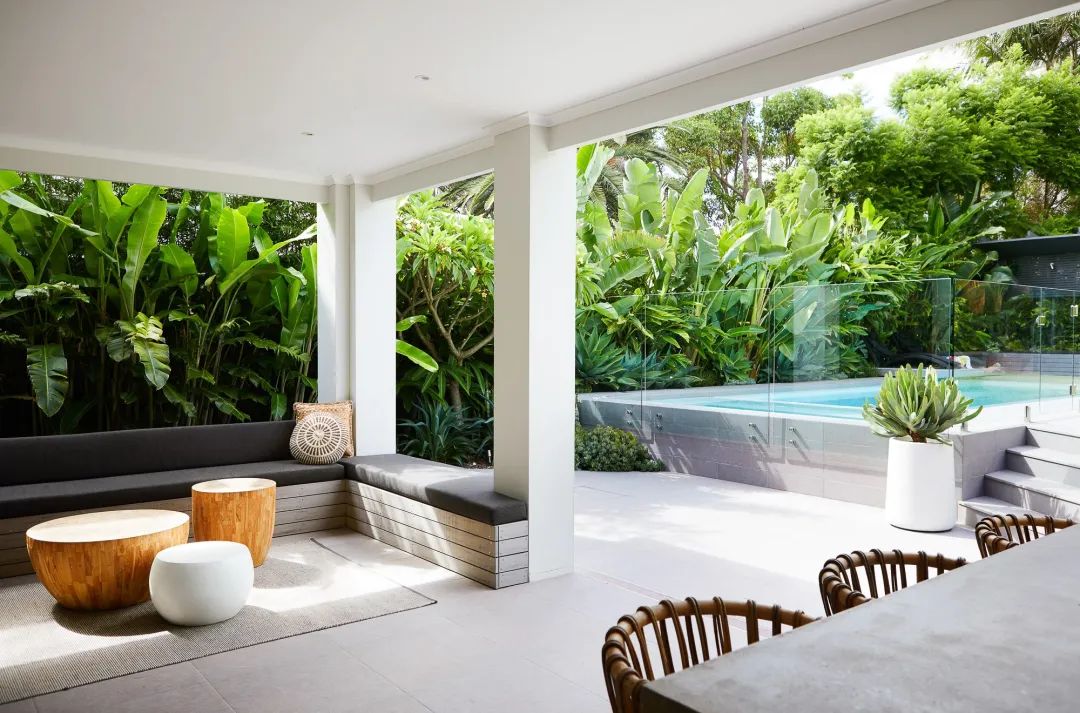 玻璃的高透視覺能和現(xiàn)代風(fēng)格的花園融洽一體,輕松地營造了現(xiàn)代氛圍;這種材質(zhì)相較于其他材質(zhì)也更容易清洗,且能受得起長時間的風(fēng)吹日曬,維護(hù)成本較低。