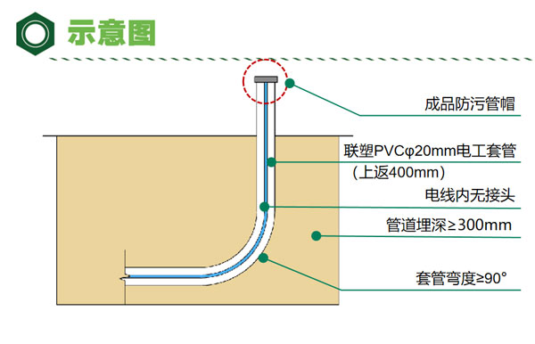 (3)電線.電纜穿入導管后埋置深度(種植區(qū))不應小于300mm.
