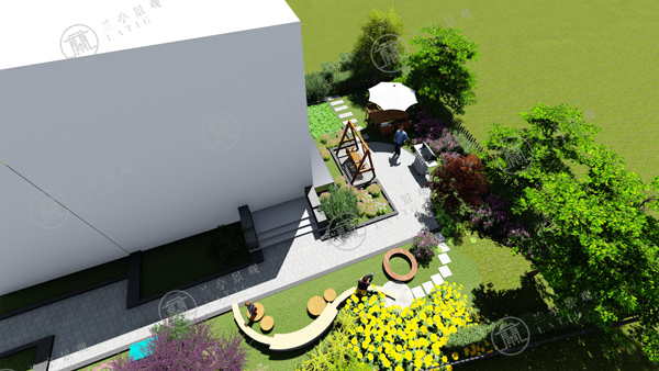 客戶有一個三歲的孩子,正是充滿好奇心與探索欲的階段。設計師在南院以平衡木的形式布置座椅和花池,在保證庭院休息娛樂功能的同時給了孩子一個鍛煉平衡力的場所。整個設計運用弧線造型,溫柔少棱角,也是對孩子、老人的一種保護。