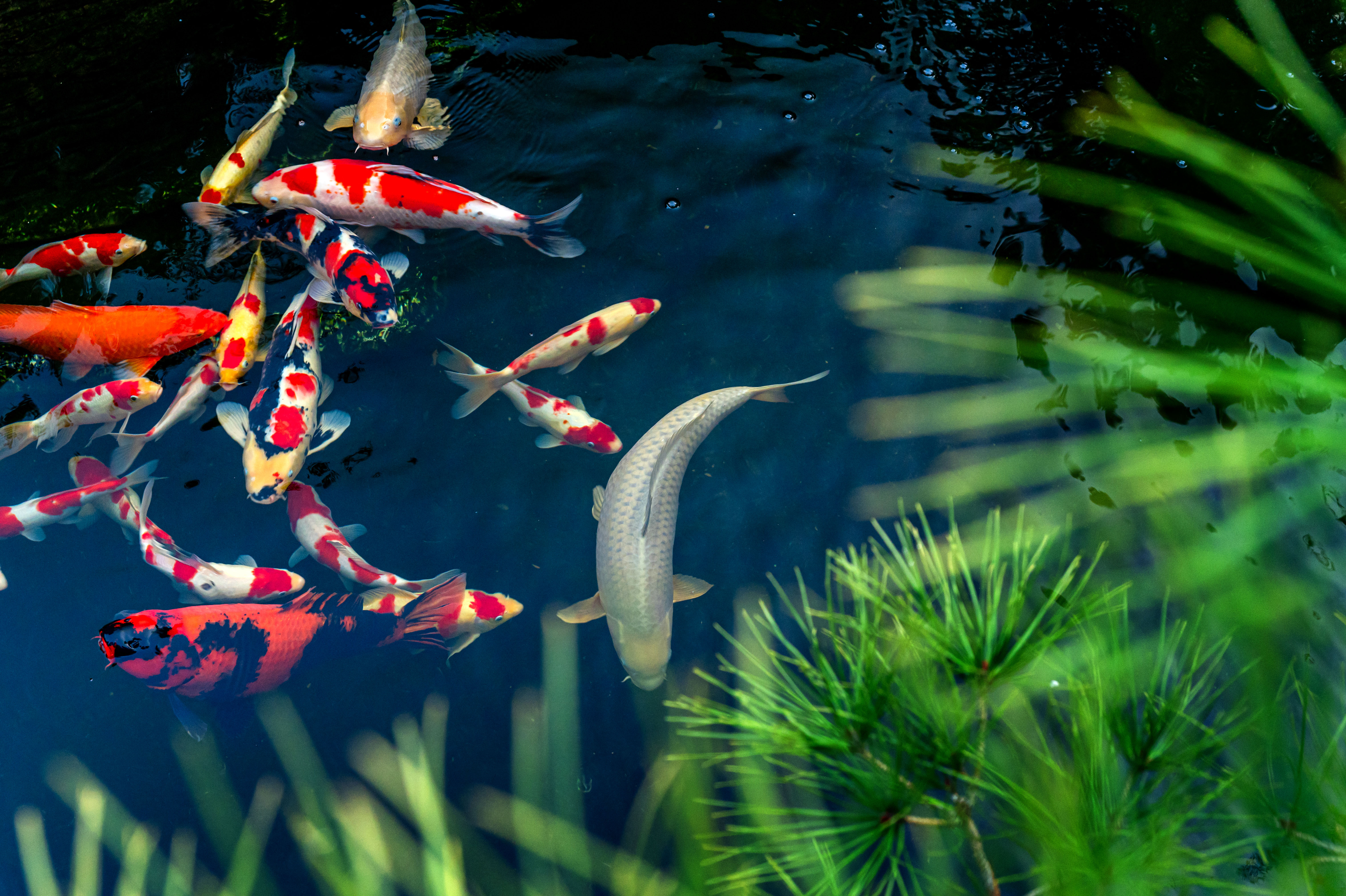 通過對(duì)現(xiàn)有魚池山石進(jìn)行修復(fù),利用“新”凈化循環(huán)技術(shù)把水做活做凈,讓池中水清澈透明,可見游魚。觀魚,觀的是游魚戲水的靈動(dòng)姿態(tài)。置石引泉,迎松入境,居有流泉,便有了靈氣,觀池中錦鯉,樹影浮動(dòng),亦動(dòng)亦靜的風(fēng)景里,三兩知己,生一爐炭,煮一碗茶,總歸是愜意,愿隨草木飲清茶,且與山水共清歡。