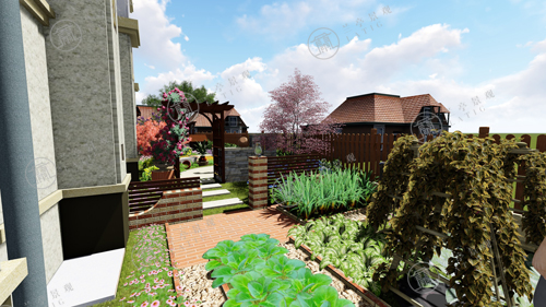 8.菜地通過荷蘭磚進行分割和圍合,結合自然石子的鋪設,塑造菜地更貼近自然的景觀效果。