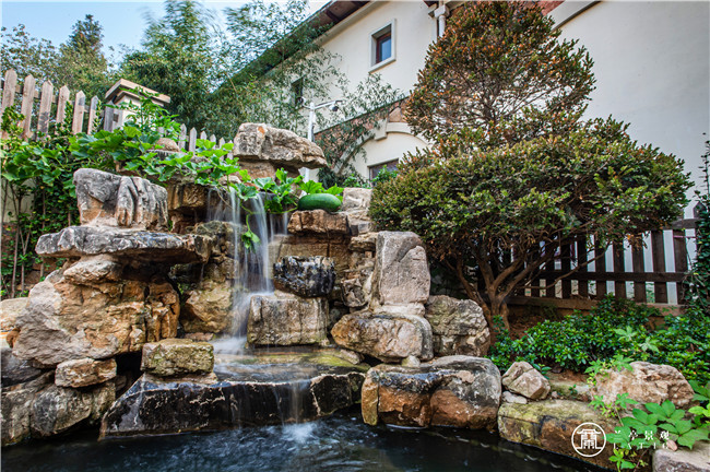 沿著自然的碎拼小路走到山邊水邊,倚欄觀魚游,池邊聽泉音,讓人自然而然的放慢腳步,停下來享受此時此刻的美景。 假山不僅在園中起到了觀賞的作用,又賦予了招財聚寶的寓意。假山旁邊是一處涼亭,坐在亭中,滿園美景盡收眼底,適合用來讀書、喝茶、作畫、聊天、獨處。在自然駁岸水系周圍,配合植物圍合點綴營造意境,仿佛將大自然搬到了自家院子,閑暇時聽枝頭鳥鳴,賞魚游水動,看綠葉婆娑,很是愜意。