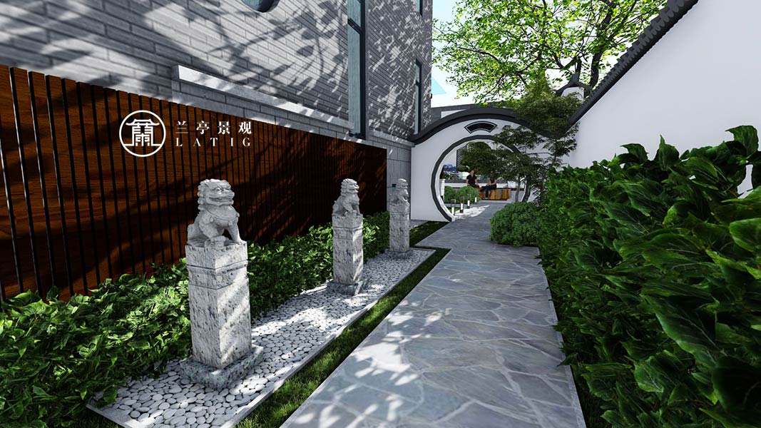 屬性:庭院效果圖 庭院面積:500-1000㎡ 庭院設計風格:新中式