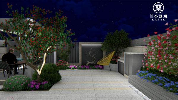 庭院景觀設計的亮點是:花園的層次感,采光口、踏步和坐凳的組合搭配,完美的解決了現場采光墻體的尷尬。空間呼應,燈光搭配,給花園增添獨特的藝術魅力。