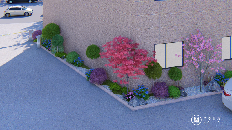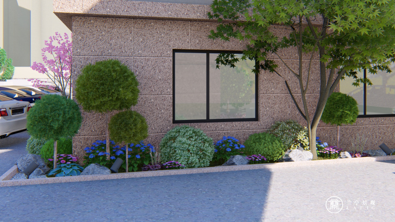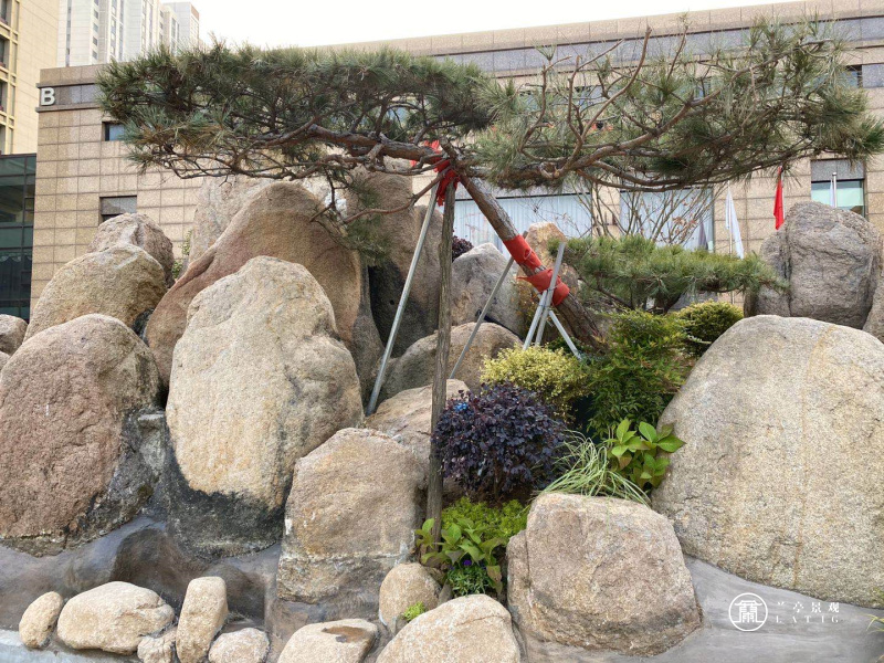 “庭園無石不奇,無花木則無生氣” ,可見庭景與植栽的關系很重要,本案設計師充分利用山石與植物,依據綠植自身的習性及個性特征進行組合排列,采用露與藏,隱與顯的設計手法彼此呼應,使方案達到了良好的視覺效果。
