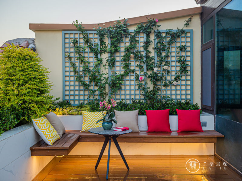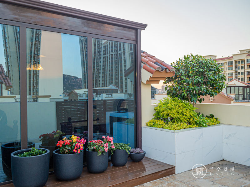 青島屋頂花園設計施工-水岸新都屋頂花園設計實景圖、露臺花園設計實景圖 屬性:庭院實景案例 庭院面積:200㎡以下 庭院設計風格:現代簡約 設計師: 周莉莉 瀏覽量:8790 發布時間:2021/11/5 18:11:54
