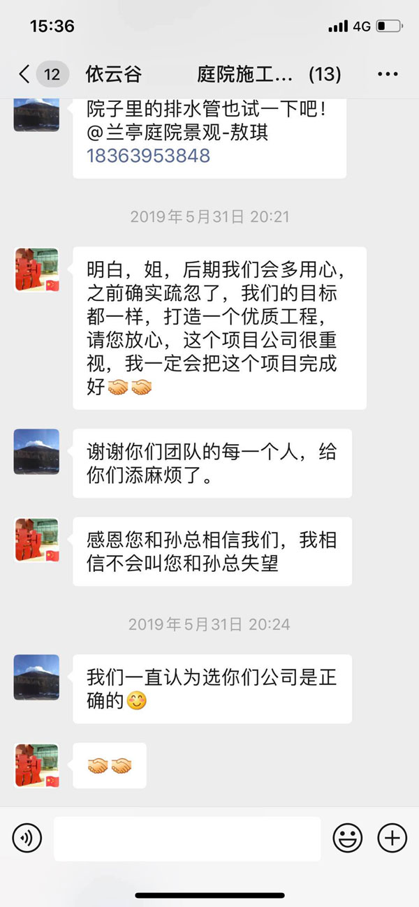 依云谷別墅庭院竣工交付,獲得客戶高度評價 來源: 點擊次數:4857 發布時間:2020/8/18 15:35:32 選擇蘭亭景觀庭院設計,就是選擇高品質庭院生活。感謝依云谷業主對蘭亭景觀的認可和高度評價