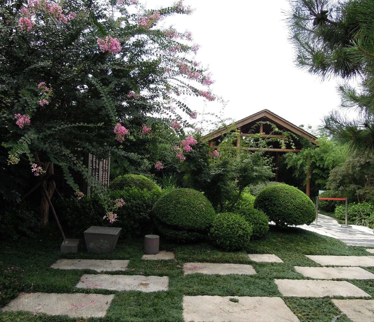 與沙礫結(jié)合的汀步,在形式上構(gòu)成變化和對比,在色彩上卻能很好的做到統(tǒng)一,使整個空間搭配和諧。