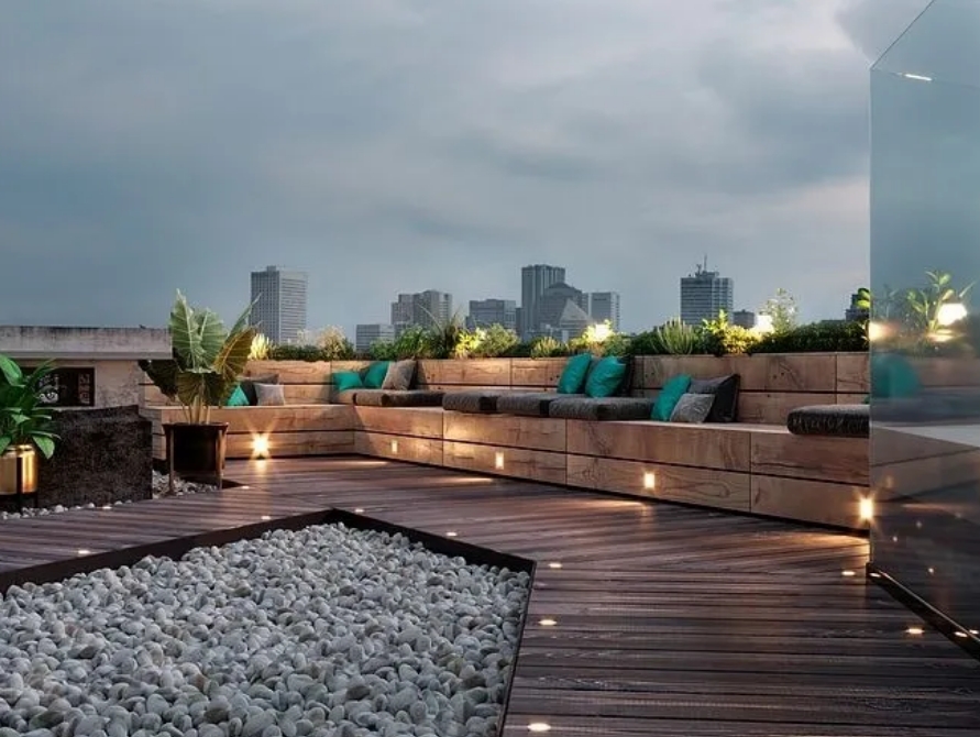自家若有個大庭院,木平臺的規劃讓花園更具人文氣息,木地板、木柵欄、木樓梯、木亭廊……起到藝術的裝飾作用,同時布置一些照明燈具,夜晚的庭院更顯沉穩和品味。