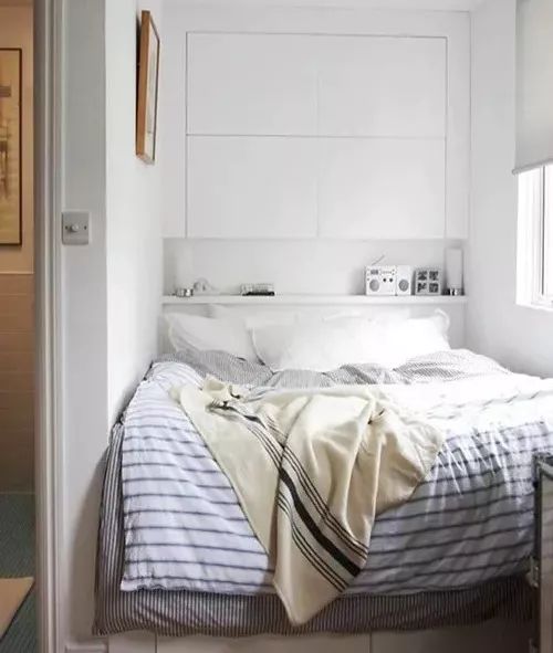 簡(jiǎn)單的白墻上用木板隔出一個(gè)簡(jiǎn)易的書架