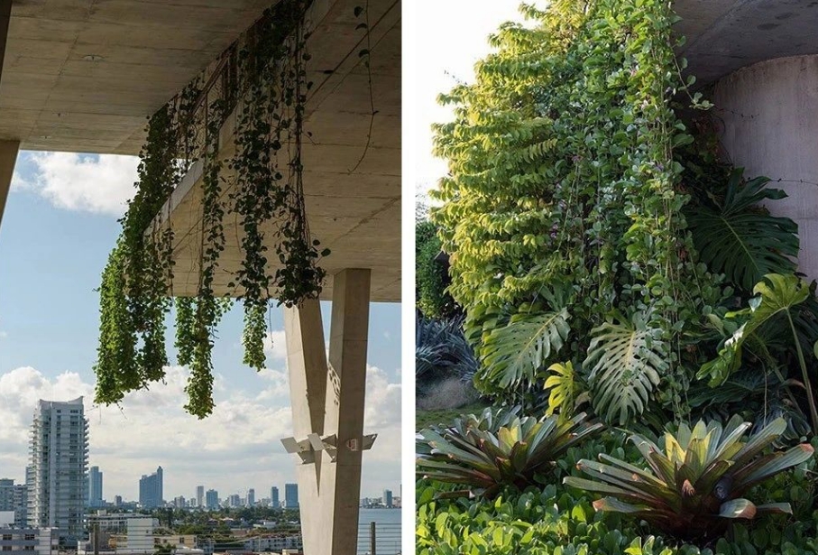 花園的西面是一處坡度空間,同時也作為公寓住宅的景觀“前庭”。斜坡園的坡度至高點為俯瞰周邊城市景致提供了理想的觀景視角,站立于此,視角可穿越比斯坎灣眺望整個邁阿密市區。蜿蜒的結縷草小徑為整個空中屋頂花園營造出形式多樣的景觀體驗。這里的草種從未刻意修剪或割除,以保持其高高聳起的自然特性。景觀設計師們還在空中屋頂花園中特別設計了相應的透水系統,以減緩坡度空間的水流,進而延長屋頂防水層的使用壽命。