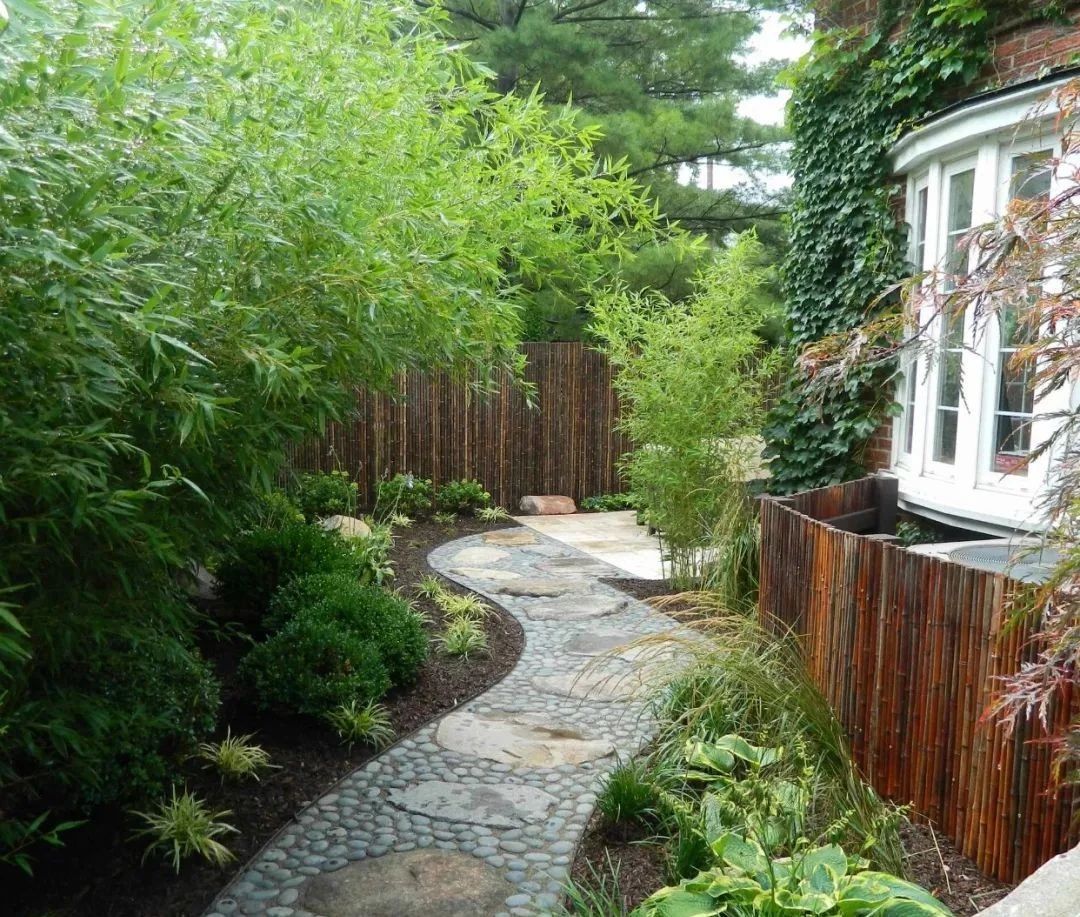 竹子在庭院中不適合大片的種,否則很容易遮光,影響庭院的采光。一般種在墻隅里比較合適,少量的竹子可以起到點綴的作用,也能凸顯庭院主人的氣節品格。