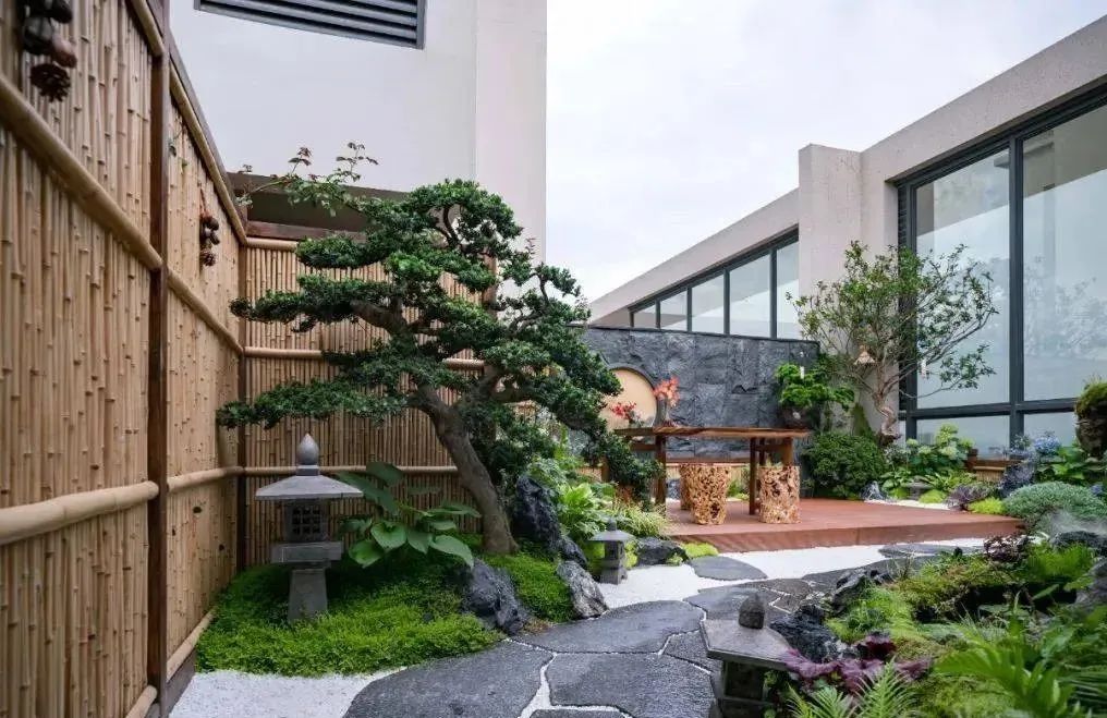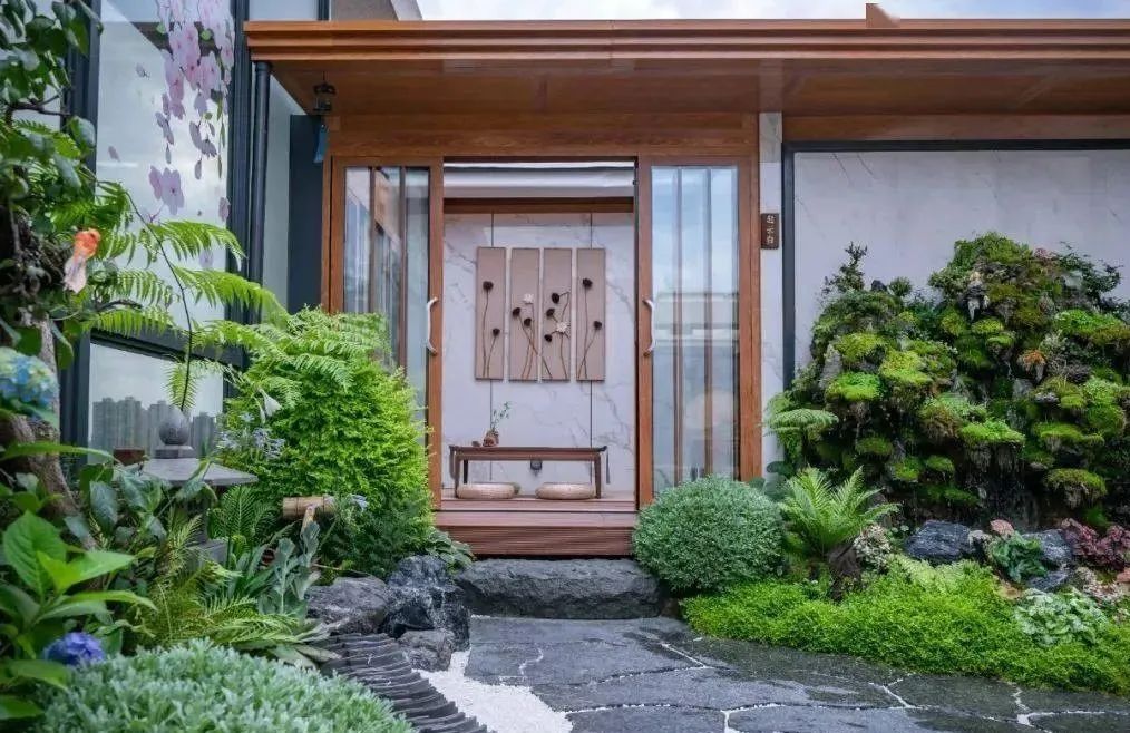 大面積的苔蘚、白色的礫石、可愛的汀步、漂浮的島嶼搭配簡約精致的植物,讓空間顯得寬敞明亮。打開造霧機以后如仙境一般,在云霧繚繞中喝茶聊天,悠閑生活。青島民宿景觀設計公司——蘭亭景觀為您介紹。