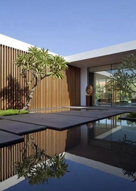 水,在中國人的庭院世界里一直是一種不可或缺的存在,那么當水遇到極簡風花園,究竟會擦出怎樣的火花?動態水可以活躍空氣氛圍,給人生機感,但極簡風格庭院的動水不適宜過大。