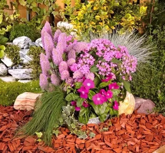 下面介紹4個德國容器花園植物組合實例,供花友設計時參考。除個別花材如頭花蓼和貝殼花等外,國內花卉市場應該都能淘到: