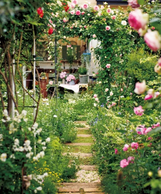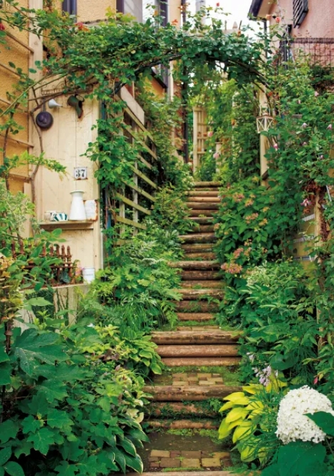 有時在打造花園時,可以刻意制造一些不完美。例如,用質樸的枕木搭配碎石打造一條不規整的花園小路,兩邊的花草探出花壇,遮蓋小路的兩邊,整體氛圍十分自然隨意,漫步其間更是覺得放松愉悅。