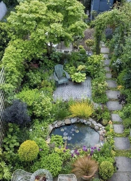 如果你的花園不大,小邦主也建議你安排一個水景,你可以買一個成品的室外魚缸,里面種上荷花,魚缸旁邊做一個小型的疊水系統,那種感覺其實也是非常舒服的,晚上當燈光照亮了水景它也會成為院子的一個亮點,讓你感受到非常的愜意。