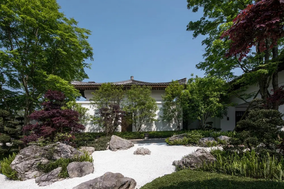 枯山水追求灑脫淡泊、脫離塵世的外在美,重視內(nèi)在的永恒感和歸屬感,它以白砂為水,石塊做山,避免了水體的變幻莫測,除去了花草樹木的交替枯榮。煙臺庭院設(shè)計公司——蘭亭景觀為您介紹。