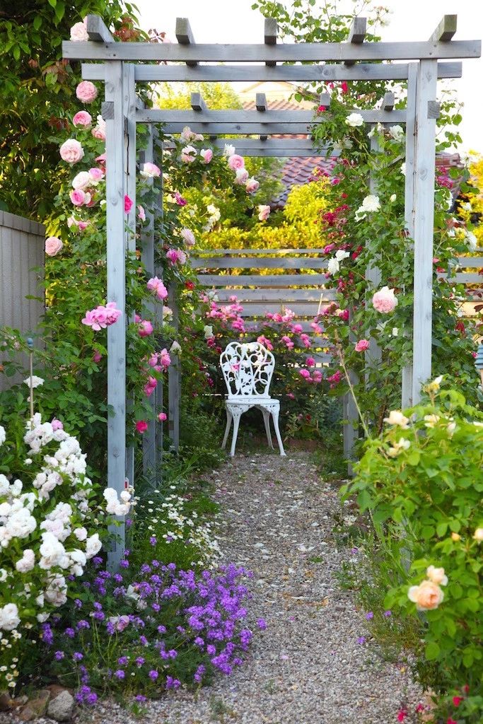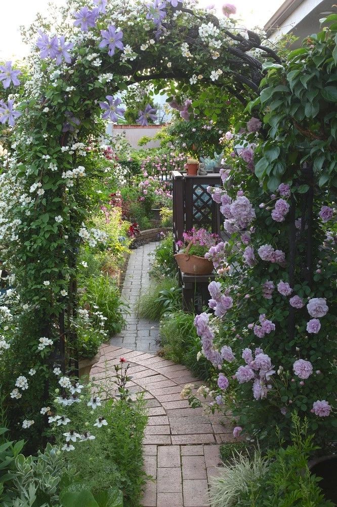 越是狹窄的地方,越是需要大型的硬件讓氣氛得到改善。如放置一個玫瑰拱門,遮擋住丑陋的電線桿或是家晾曬的衣物架,而把數只拱門連接起來,就可以提升整體環境的深邃感……利用花園硬件來創造出視覺魔法,進一步提升小路的品質。