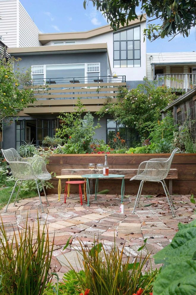 圖為加州一個(gè)前院花園,花園設(shè)計(jì)師伊恩為了節(jié)約建造成本,在休閑區(qū)和路徑上使用了預(yù)制水泥板塊和碎石,而不是造價(jià)相對(duì)高的石材,花園主可以在后期升級(jí)石材鋪裝。