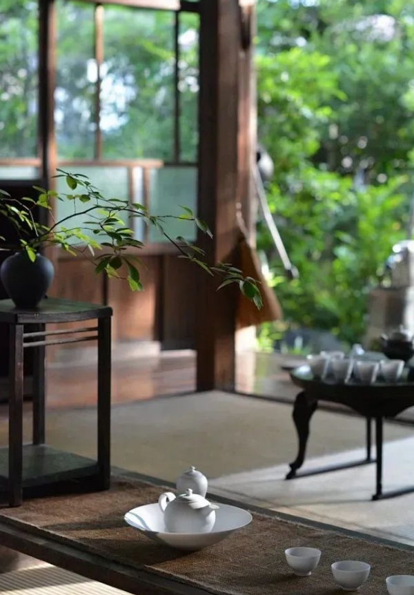 庭院茶藝空間最好選擇在有綠樹和山水的地方,營造出自然恬靜的氛圍。這樣不僅能提供優美的自然景觀,還能讓人在品茶時感受到寧靜和放松?。