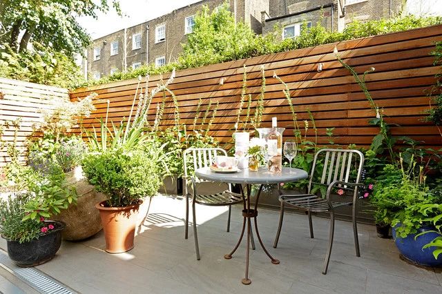如果想為花園增添現代氣息,這種水平的寬板木圍欄是不錯的選擇。不僅能在視覺上擴大花園空間,木板之間的留縫又能使花園內外空氣相互流通。在圍欄前的種植池內搭配高挑、細長的植物,能柔化木圍欄帶來了生硬感。