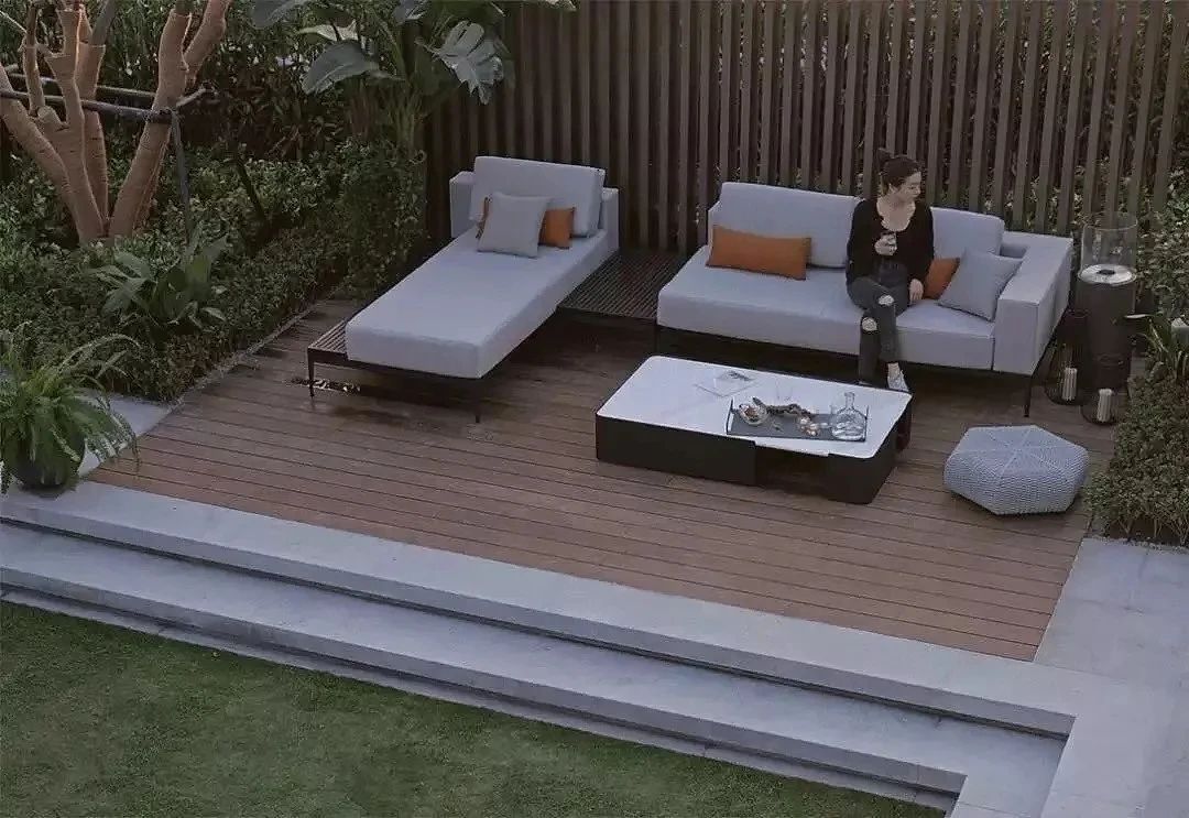 c.開放式:視野開闊,以休閑平臺為主,可以選擇與花園整體風格相匹配的材質和色彩,打造出既美觀又實用的休閑空間。