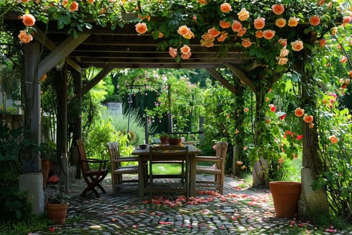 在庭院中休閑空間的座椅或秋千上方種植爬藤植物,為休閑區(qū)增添舒適和浪漫氛圍。