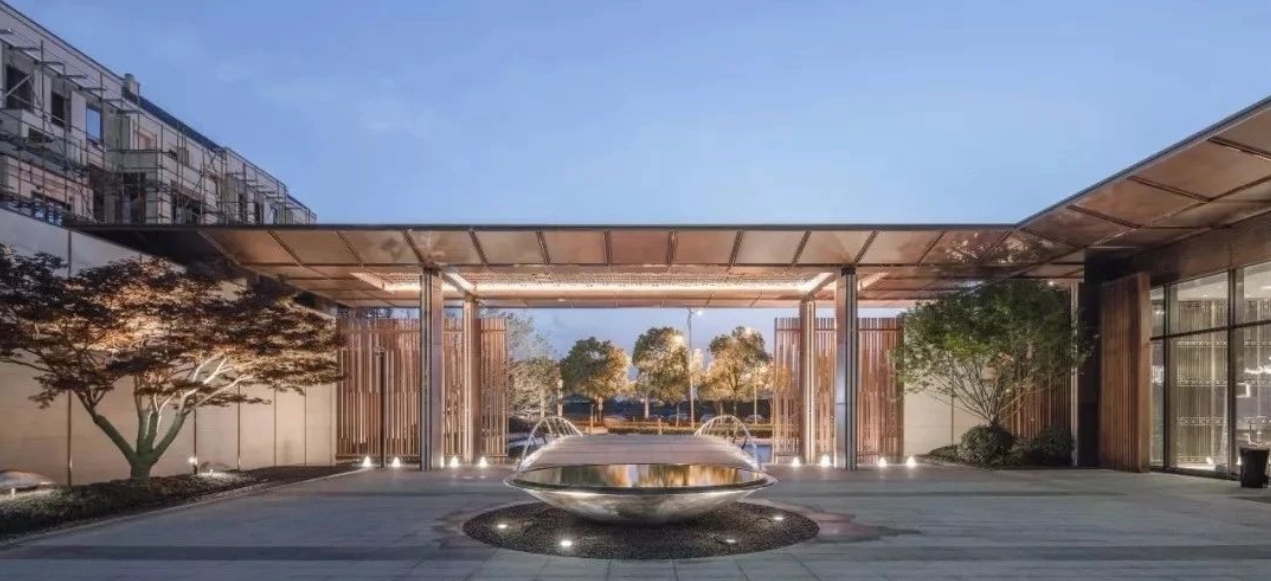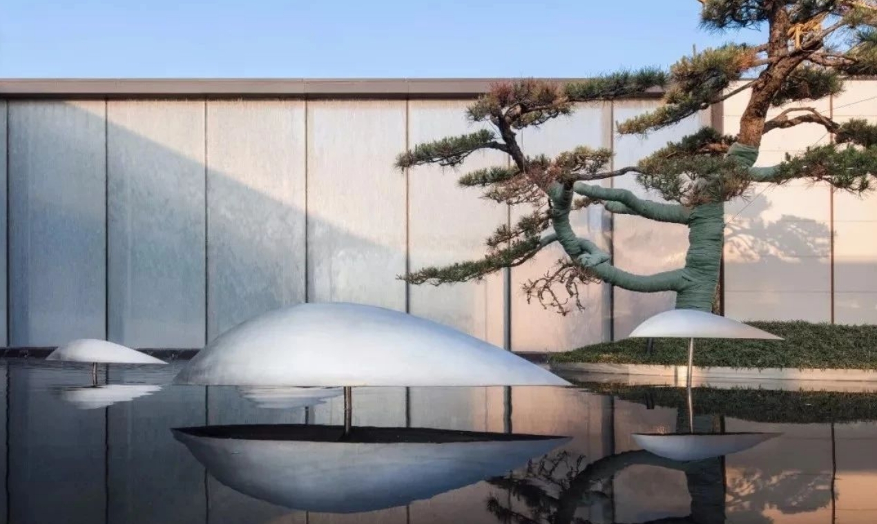 在中國文化里,魚,與人類、生活有著千絲萬縷的關(guān)系。「公元2040」提取東方傳統(tǒng)元素的基礎(chǔ)上,融合現(xiàn)代技術(shù)與現(xiàn)代審美,創(chuàng)造性地再設(shè)計,將現(xiàn)代元素和中國元素結(jié)合,將“魚”這一元素貫穿在整個設(shè)計中。隨著空間的變化,魚的形態(tài)也隨之發(fā)生變化。這種可變性,會激發(fā)人的創(chuàng)造性的想象。青島庭院設(shè)計