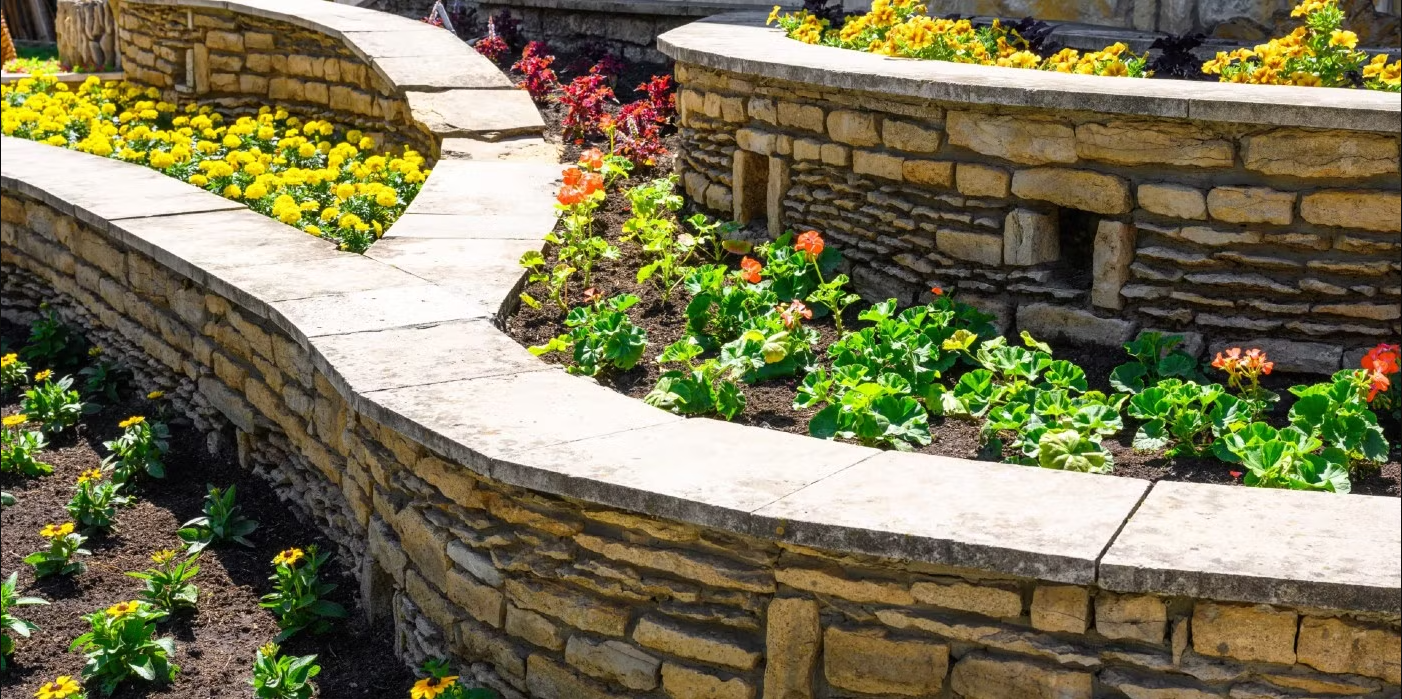 在高低起伏的地形中,石墻或石砌邊界能有效支撐土壤,防止水土流失,同時(shí)形成獨(dú)特的層次感。