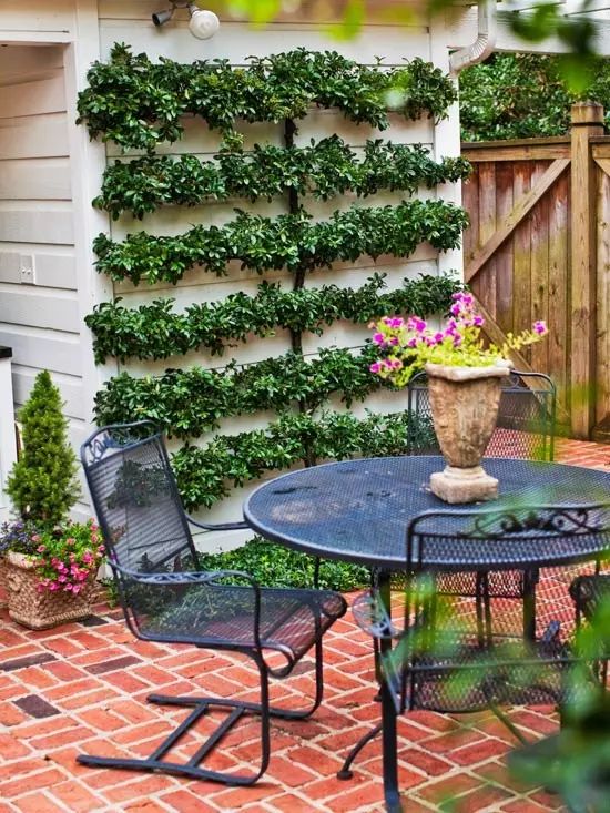 利用高的網(wǎng)格狀物來建立天井周邊的一個溫和邊界,這是一個非常不錯的方法。如果想為花的成長提供足夠大的生長空間,那要選擇一個適合的地方,例如在陽光充足的條件下種植葡萄。待葡萄開花之時,迷人的芬芳氣味撲向路人,是個不錯的選擇。