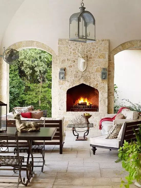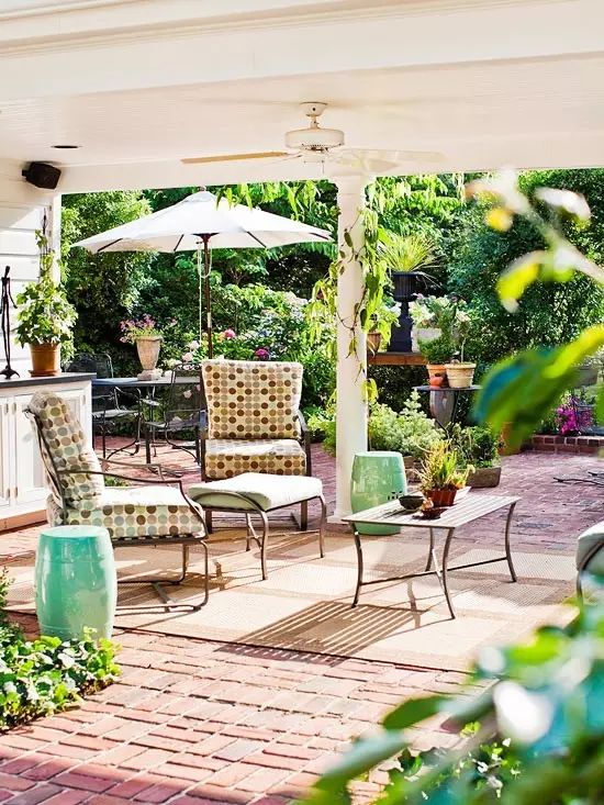 天井,本來能起到庇護的原理作用,不幸的是,卻擋住了夏天冷卻的微風。如果你有一個開放式的結(jié)構——一個真正的屋頂或棚架,你可以在其頂上設置一個吊扇,它可以幫忙降低高達10度的溫度。在吊扇邊裝一盞燈,還將有一個可靠的架空照明光源。青島別墅庭院設計