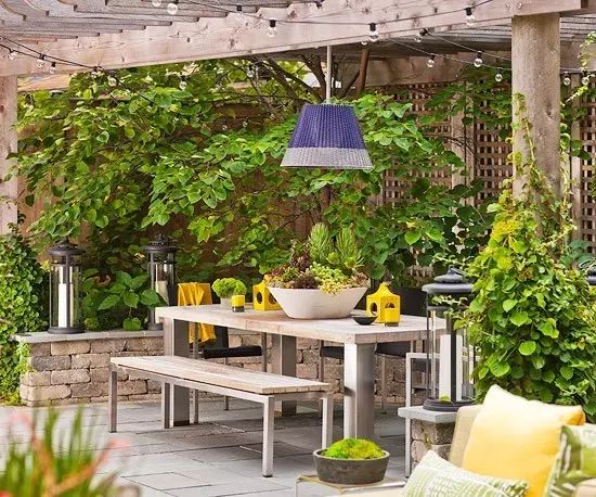 軟裝不僅僅是戶外家具,各種裝飾品,還有植物,如果不想在你花園筑起一道墻,你可以種植一些樹來軟化庭院的邊境。