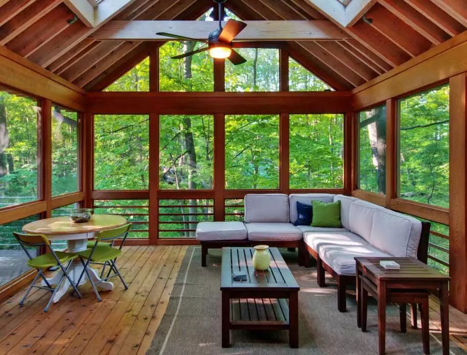 在陽(yáng)光房的裝飾中常見(jiàn)的是采用自然材料,搭配舒適的家具,讓室內(nèi)外的風(fēng)景在這里銜接自然,一般設(shè)置為茶室、小型運(yùn)動(dòng)室、玩樂(lè)區(qū),打造出更為舒適浪漫的休閑空間。陽(yáng)光房除了是放松、休憩的去處,也是最好的會(huì)客以及休閑區(qū)。在顏色上盡量使用淺色,而家具的選擇也盡可能天然。