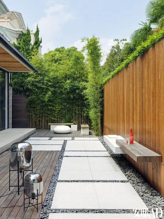衛(wèi)生問題是讓大部分人頭痛的一個(gè)點(diǎn),其實(shí)只要在前期設(shè)計(jì)時(shí)留意一些細(xì)節(jié)就可以省很多心。首先是地面的鋪裝問題,鋪裝也分很多種形式,常見的有步石、鵝卵石、地被植物、木板等。
