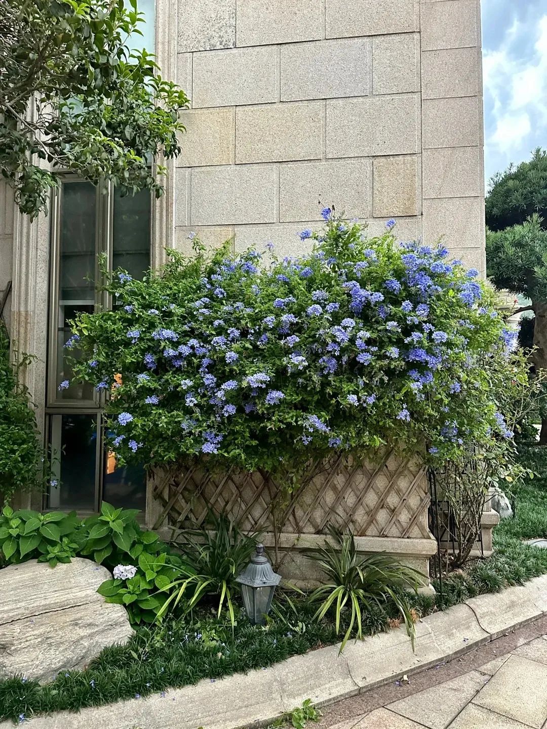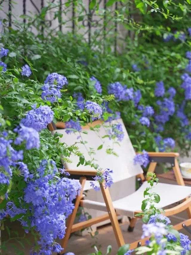 藍雪花與百子蓮的藍紫花序可產生視覺降溫2-3℃的錯覺,配合白色木繡球的純凈質感,構成經典的"冰川三角"配色。在日照強烈的南向庭院,也可增加銀葉菊等灰調植物的比重,形成自然反光板。