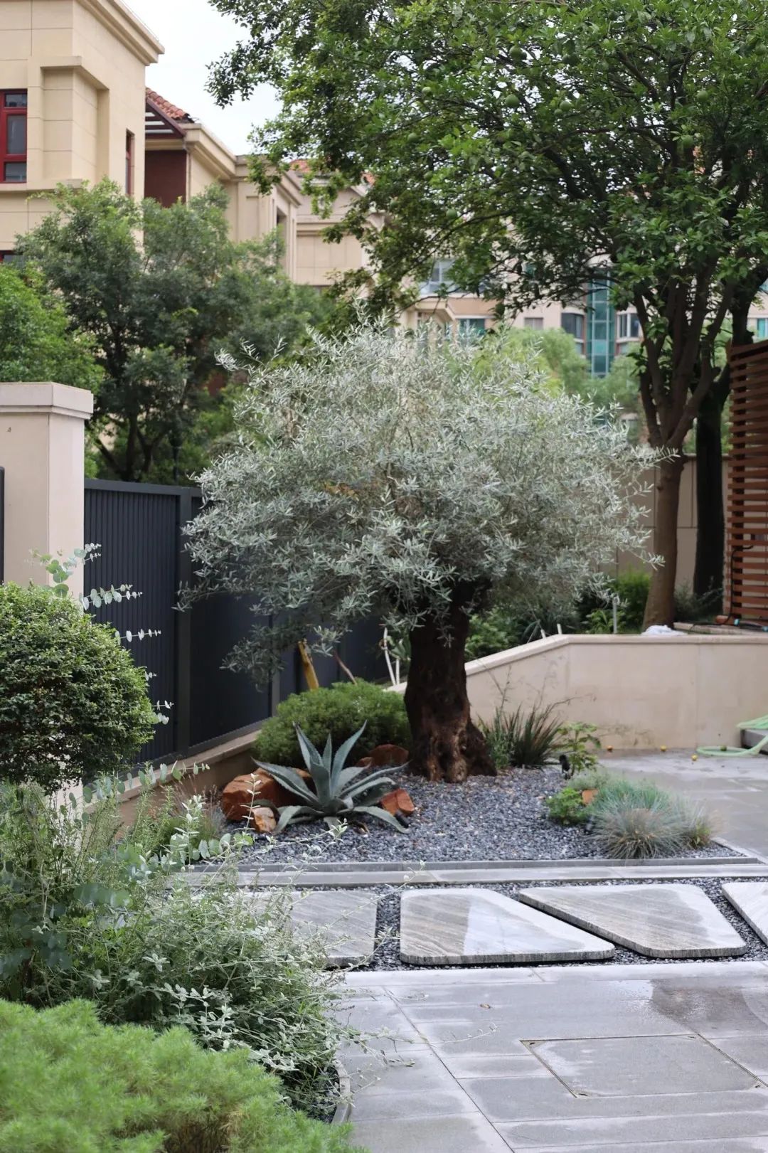 不再簡單復制橄欖樹與迷迭香,而是提取其形態基因:用本地適生的檉柳模擬橄欖樹的蒼勁,以百里香地毯重現地中海灌叢的肌理。釉面陶盆種植的龍舌蘭,成為現代派的地中海符號。