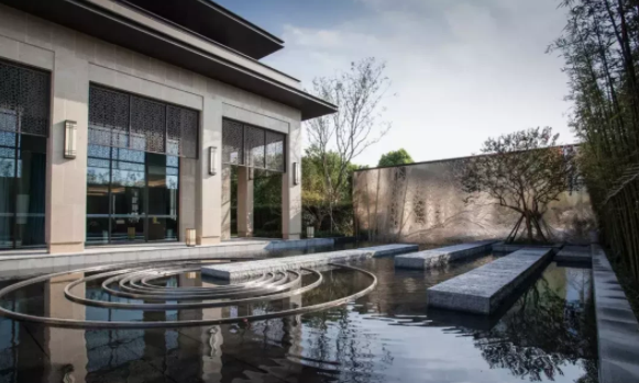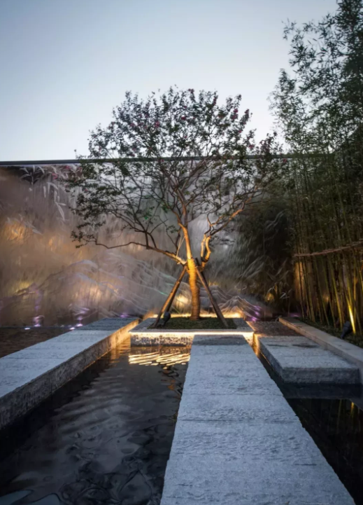 木原色是體現自然的色彩,與灰色、白色等搭配通常用鋪裝、臨水欄桿、小品構架等,體現“新中式”景觀設計沿襲中國古典園林“雖由人作,宛若天開”的造園特點。青島別墅花園設計