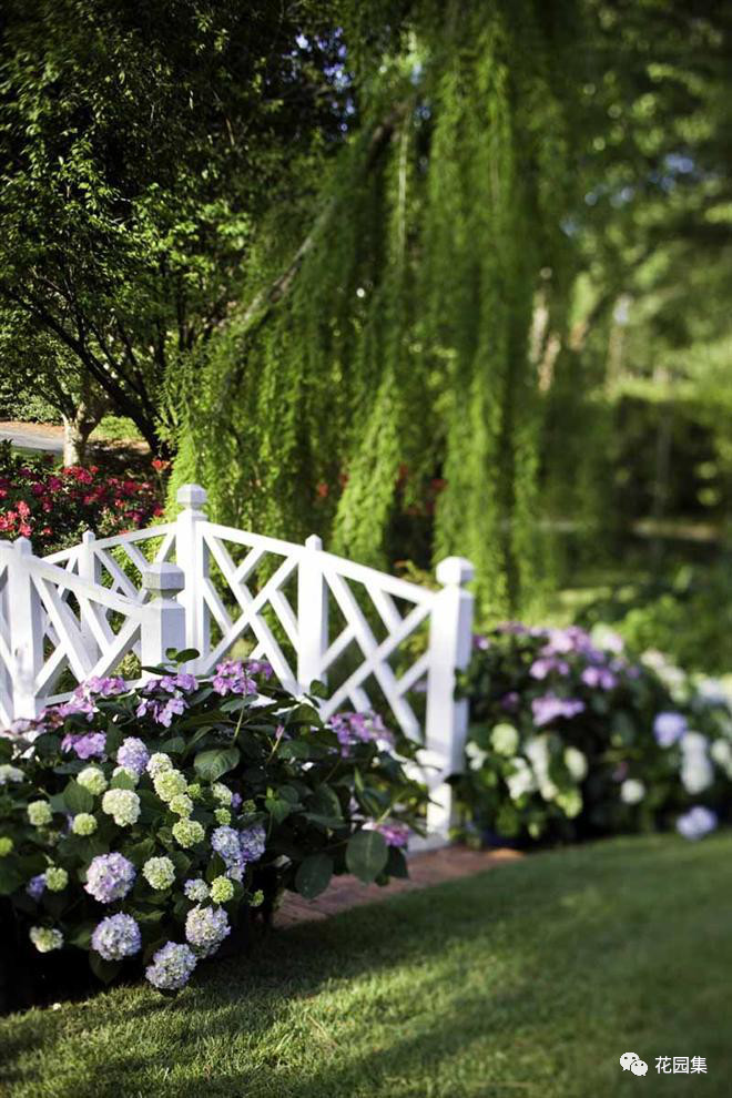 調色需要提早進行,至少在冬季就開始,花芽分化時調色最有效。繡球初開到中期和后期,每個階段顏色都會變化,即使你不調色,也能欣賞到整個花期的不同色調。青島別墅庭院設計