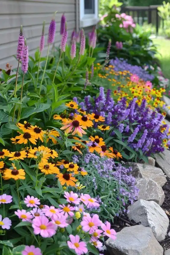 我們可以在庭院的一側(cè)或角落打造一個(gè)自然花境,模仿自然界的植物群落,將各種花卉、草本植物和觀賞草混合種植在一起。花境中可以搭配一些多年生花卉,如薰衣草、鼠尾草、鳶尾等,它們不僅花期長(zhǎng),而且具有獨(dú)特的香氣,能讓人在欣賞美景的同時(shí),放松身心。