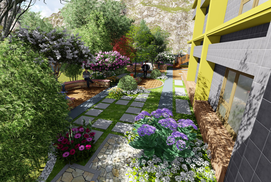 色彩的選擇以中性色為基調,暖色調熱烈、興奮,冷色調優雅、明快;明朗的色調使人輕松愉快,灰暗的色調則更為沉穩寧靜。色彩若是過于鮮艷,可能喧賓奪主而埋沒主景,甚至造成庭院景觀雜亂無序。