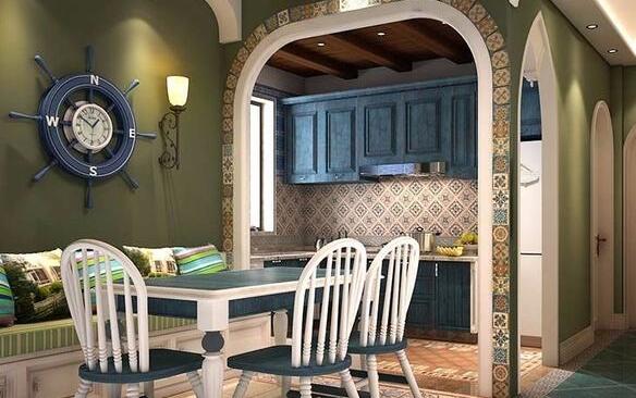 地中海風格之所以備受我國人喜歡就是因為它純美的色彩組合。其中比較有地域性的三種典型的顏色搭配就是西班牙蔚藍色的海岸和白色沙灘;希臘的白色村莊與沙灘和碧海、藍天融合成一體,還有就是北非特有的沙漠、巖石等等。